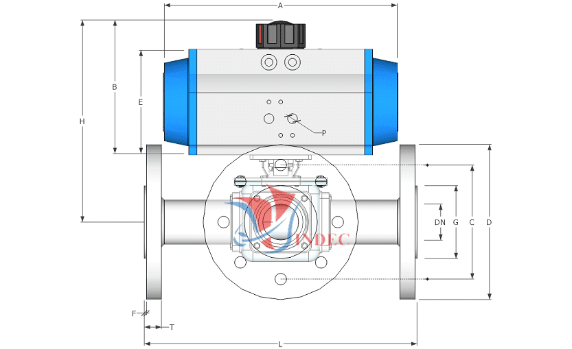 | DN | Actuator | A | B | C | D | E | F | G | H | L | T |