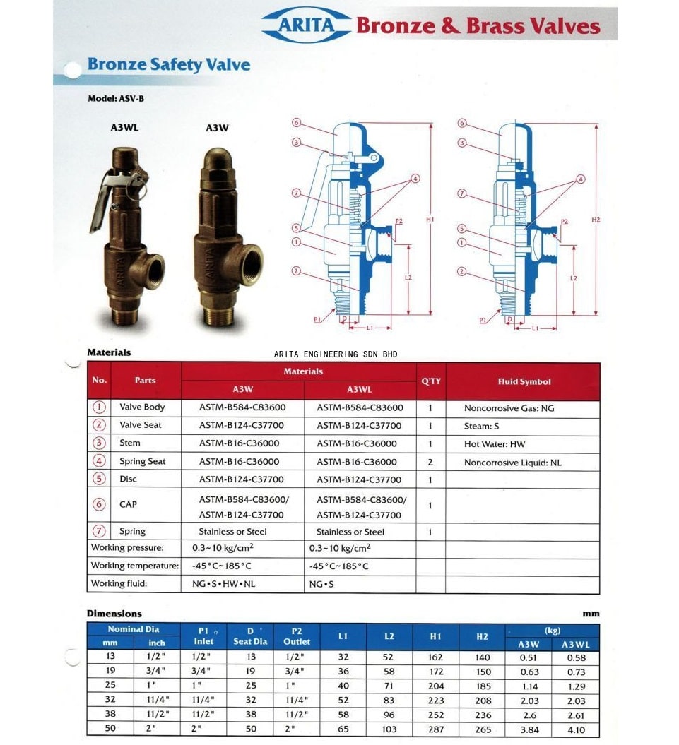 BRONZE SAFETY VALVE WITH OUT LEVER SCREWED ENDS