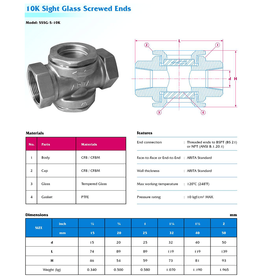 ARITA CAST IRON SIGHT GLASS SCREWED ENDS