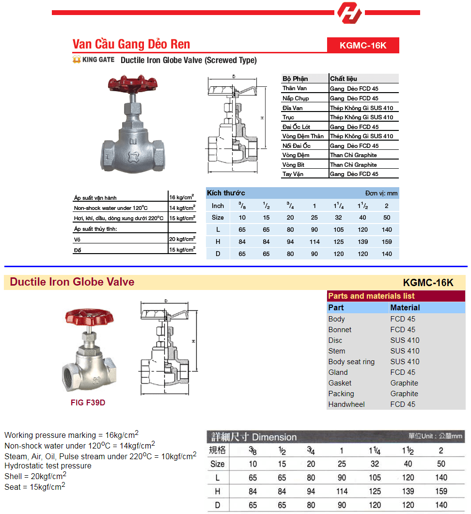 King Gate Ductile Iron Globe Valve 16K Thread Ends