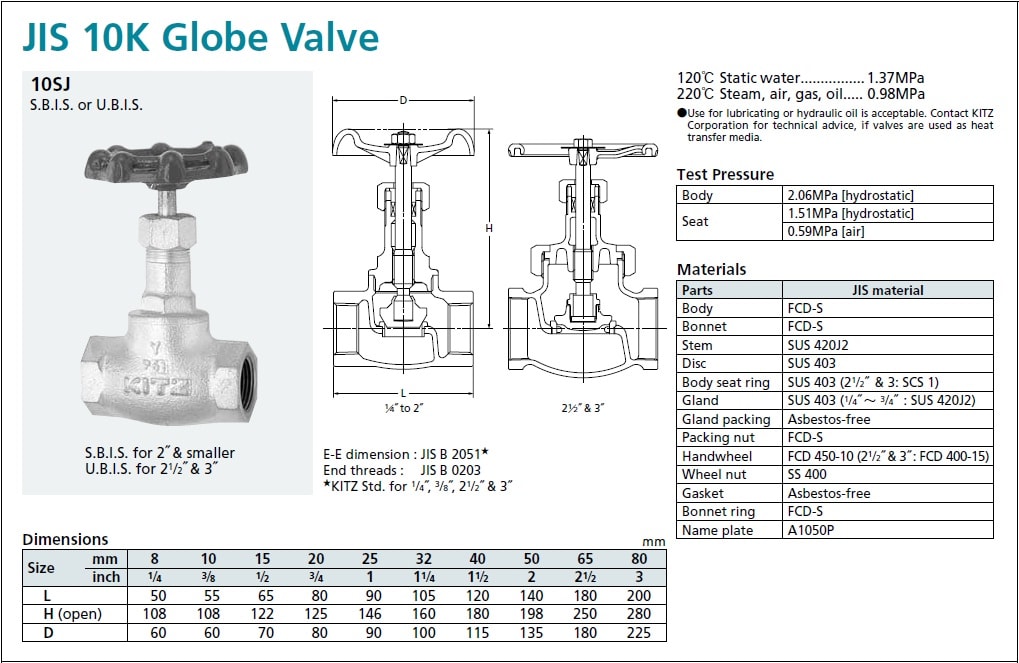 KITZ DUCTILE IRON GLOBE VALVE, THREADED ENDS.