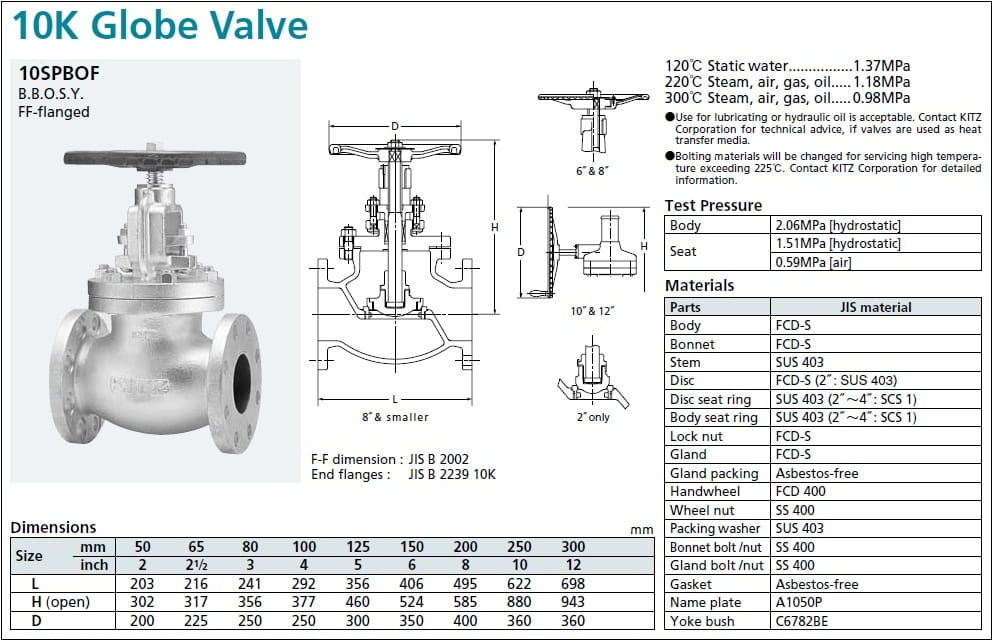 KITZ DUCTILE IRON GLOBE VALVE, JIS 10K FF FLANGED ENDS