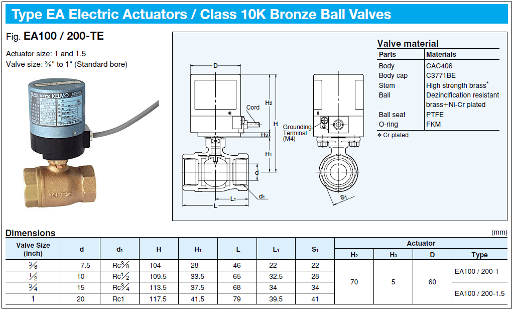 Van Bi Đồng Điều Khiển Bằng Điện KITZ EA200-TE - Van KITZ