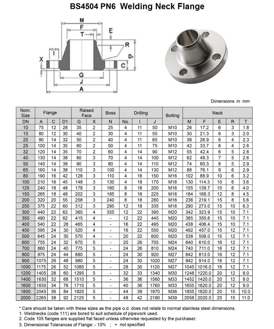 Dimension of BS4504 PN6 - Welding Neck Flanges