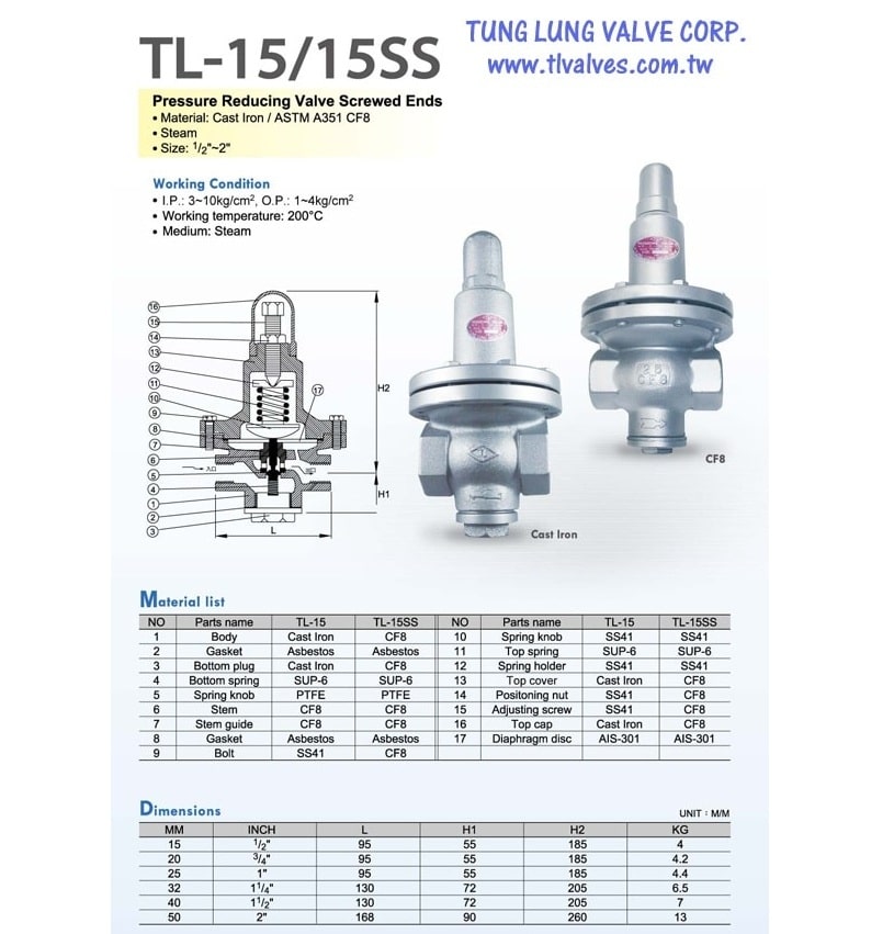 TUNG LUNG Cast Iron Pressure Reducing Valve Threaded Ends