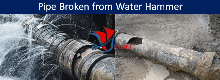 - Mặt khác, khi van thượng lưu trong đường ống đóng lại, dòng nước ở hạ lưu của van cố gắng tiếp tục chảy, tạo ra một khoảng chân không (vacuum) và khoảng chân không này có thể gây ra gãy hoặc nổ đường ống. Vấn đề này có thể trở nên đặc biệt nghiêm trọng nếu đường ống được đặt trên sườn dốc.