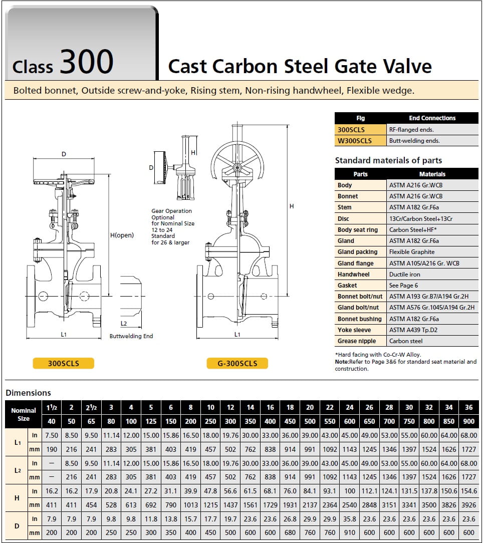 KITZ CAST CARBON STEEL GATE VALVE, ANSI 300# FLANGED ENDS.