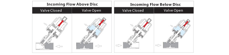 - Thiết kế góc chéo 30 độ giúp van hạn chế được hiện tượng búa nước. Chất lượng van tốt có độ bền cao. Dùng được cho môi trường áp suất chân không.