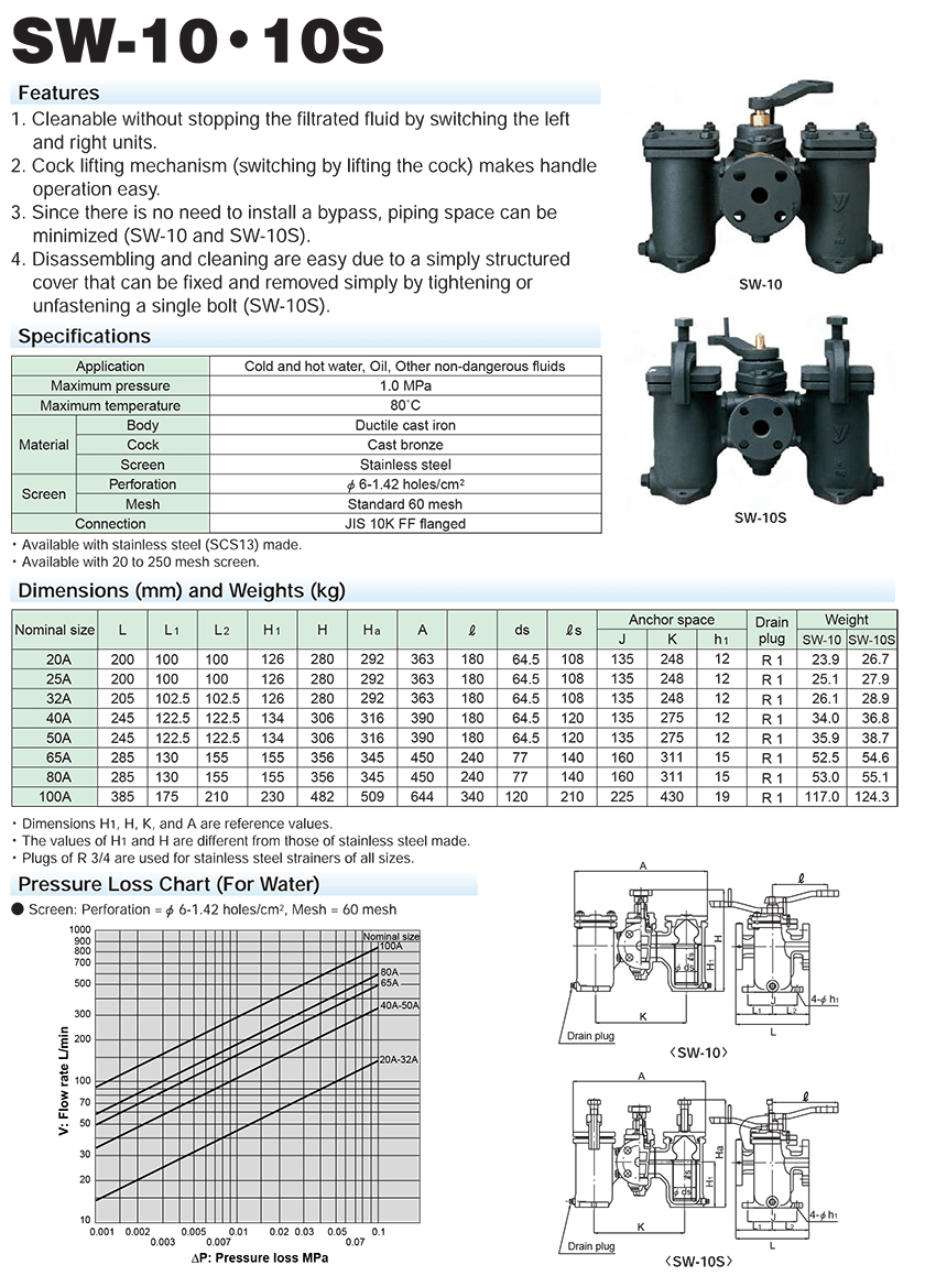 YOSHITAKE DUPLEX STRAINER, JIS 10K FF FLANGED ENDS