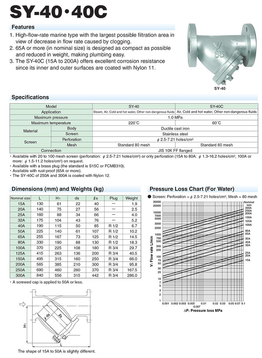 YOSHITAKE DUCTILE IRON STRAINER, JIS 10K FF FLANGED ENDS